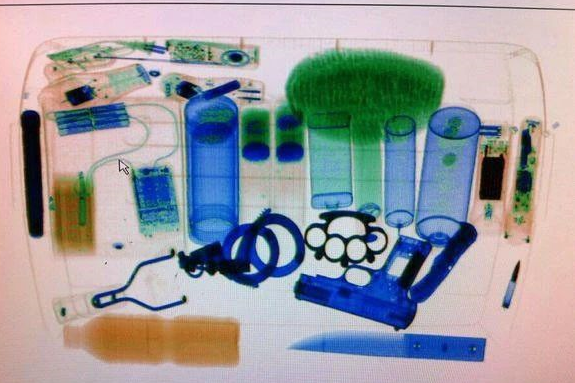 安檢機大多是依靠x射線,來辨別旅客的行李物品,因為這些行李會阻攔到機器的檢測信號,被阻攔的檢測信號傳輸到系統后臺,顯示屏便會出現這個物件的輪廓,x光能穿透物件,不同密度的物體現實出來的顏色是不一樣的,例如一般的塑料、紙張都顯示為綠色,而金屬類物件都會顯示藍色,換句話說任何違禁物品都能被檢測出來。